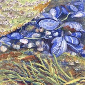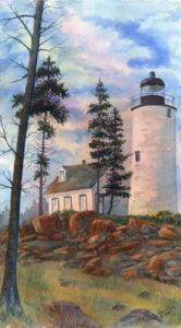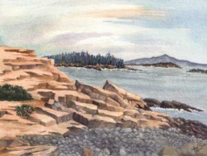 Acadia National Park, on the rocky coast of Maine, is a place where I have spent 2-3 months a year for the past 10 years. Since I once lived further up the coast, it feels to me like returning home. While there I do small plein air watercolors and take many pictures of ocean scenes to work on in my studio. My volunteering duties at this park have included hosting artists-in-residence who pass through, working with the Schoodic Education Adventure, a program for middle school students, and working at the Carroll Homestead to acquaint visitors with stories of early coastal settlers.