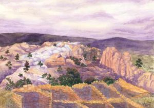 In contrast to the close-up landscapes of the East, the southwestern United States offers my artistic eye broad views of fantastic rock formations and sparse brown landscapes. I love the area, and have volunteered at parks in both New Mexico and Colorado to feel the power of those wide-open spaces, as well as the history of its settlement.