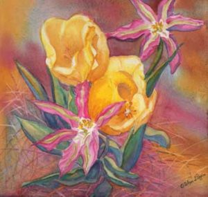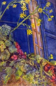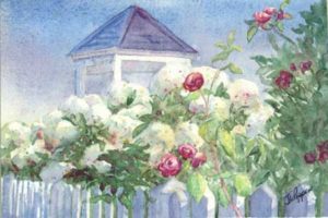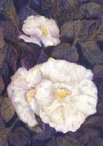 In time, I have developed a “formula” for the output: The watercolor is usually small, and there is a contrast between a vague, abstracted background and detailed focal point, which is the subject. The problems of the larger landscapes related to composition go away. Just the pure pleasure of working with wet-in-wet watercolor in the background, petals, or foliage, coupled with the idea that I can be as detailed as I want when I get to the subject provides the release I seek.