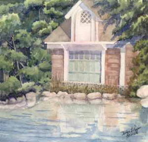 This gallery of paintings of the boathouses on Lake Sunapee, New Hampshire, features the charm and beauty of a more relaxed era. I tried to capture this charm in watercolor for all to enjoy. While the paintings are a snapshot in time (2005-06), most of the boathouses are closer to a half-century old, and reflect grace and functionality that is timeless.