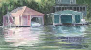 All of the original boathouse paintings shown here have been sold, but fine art reproductions may be ordered by contacting the artist on the “Contacts” page.